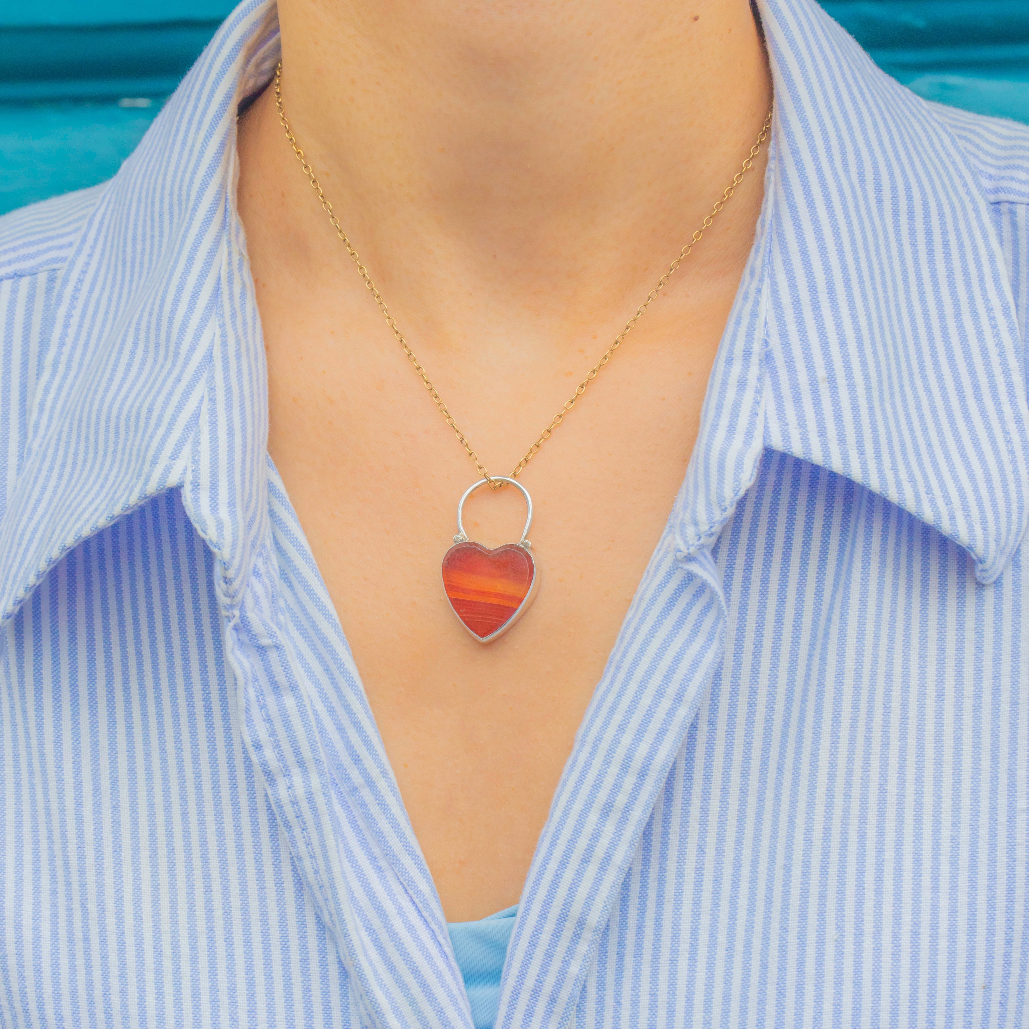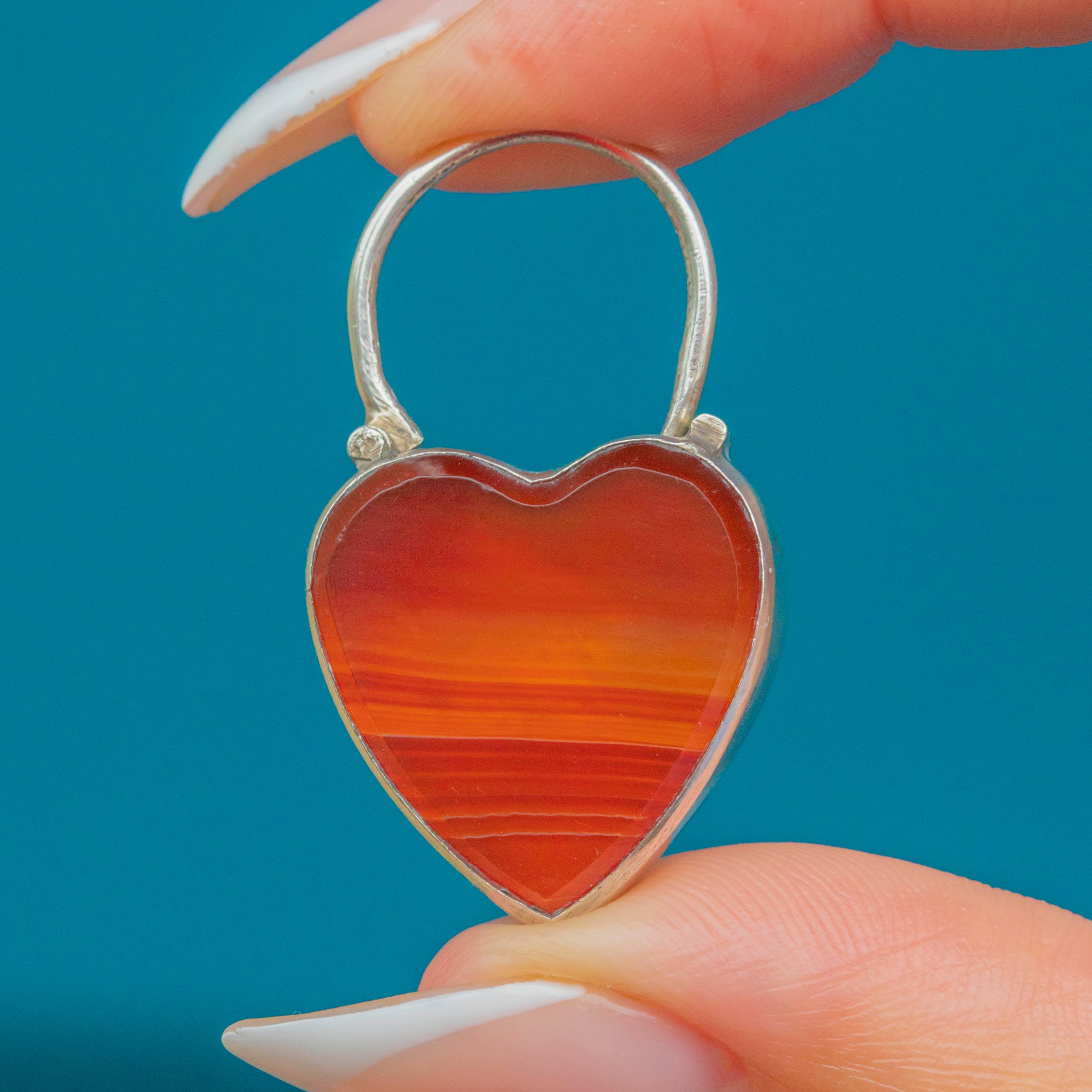 Victorian Sterling Silver Banded Orange Agate Heart Padlock