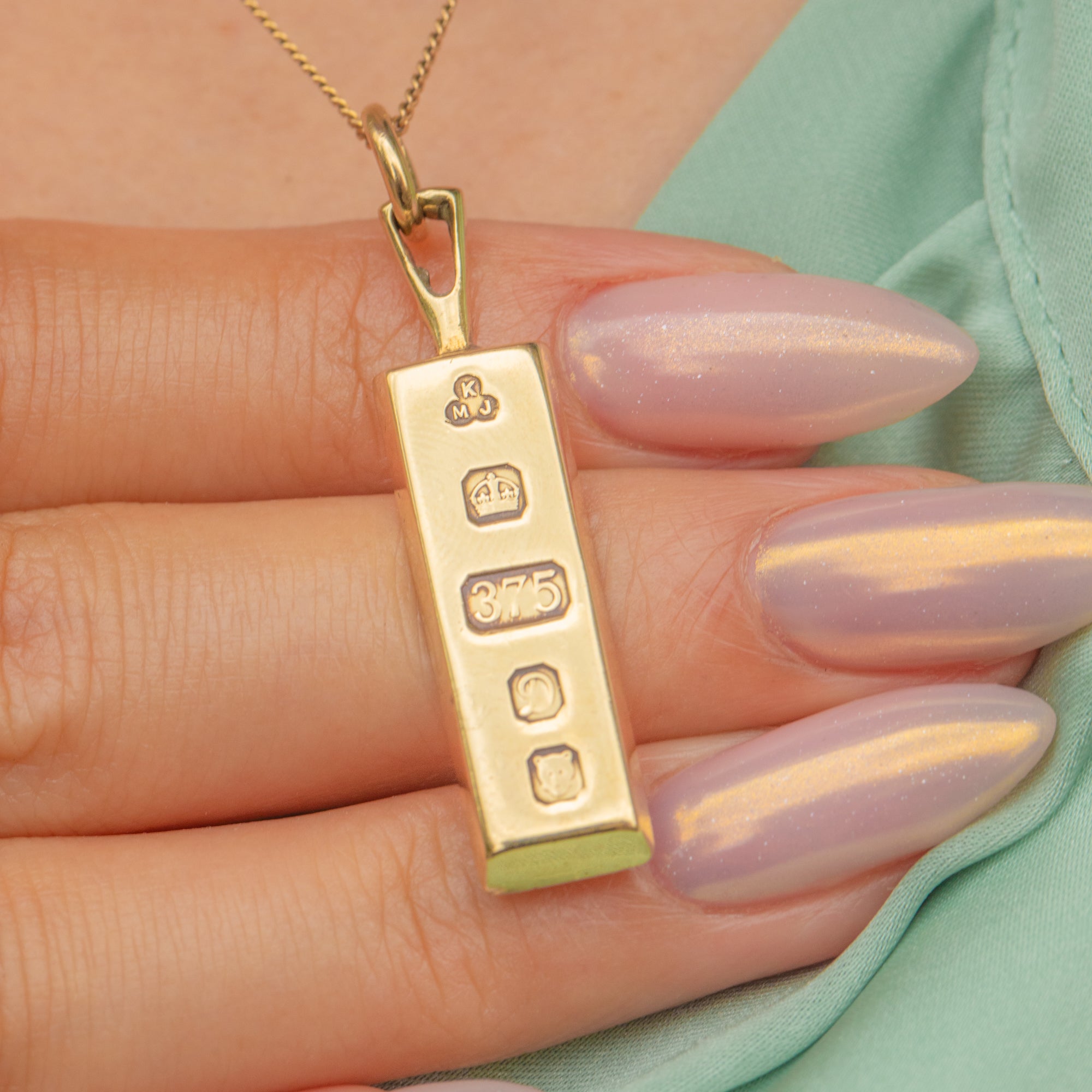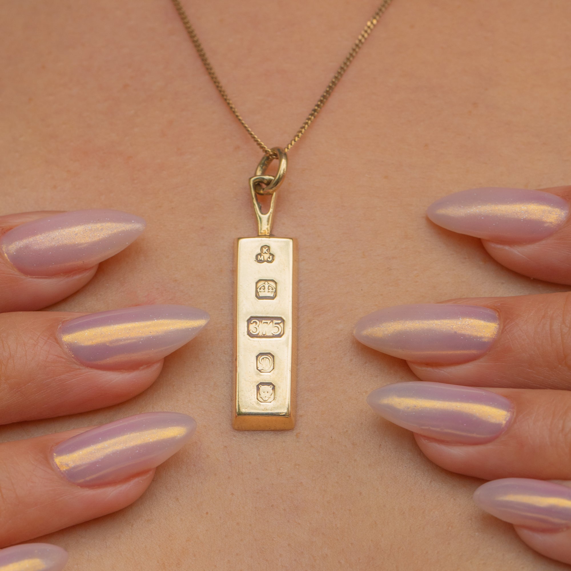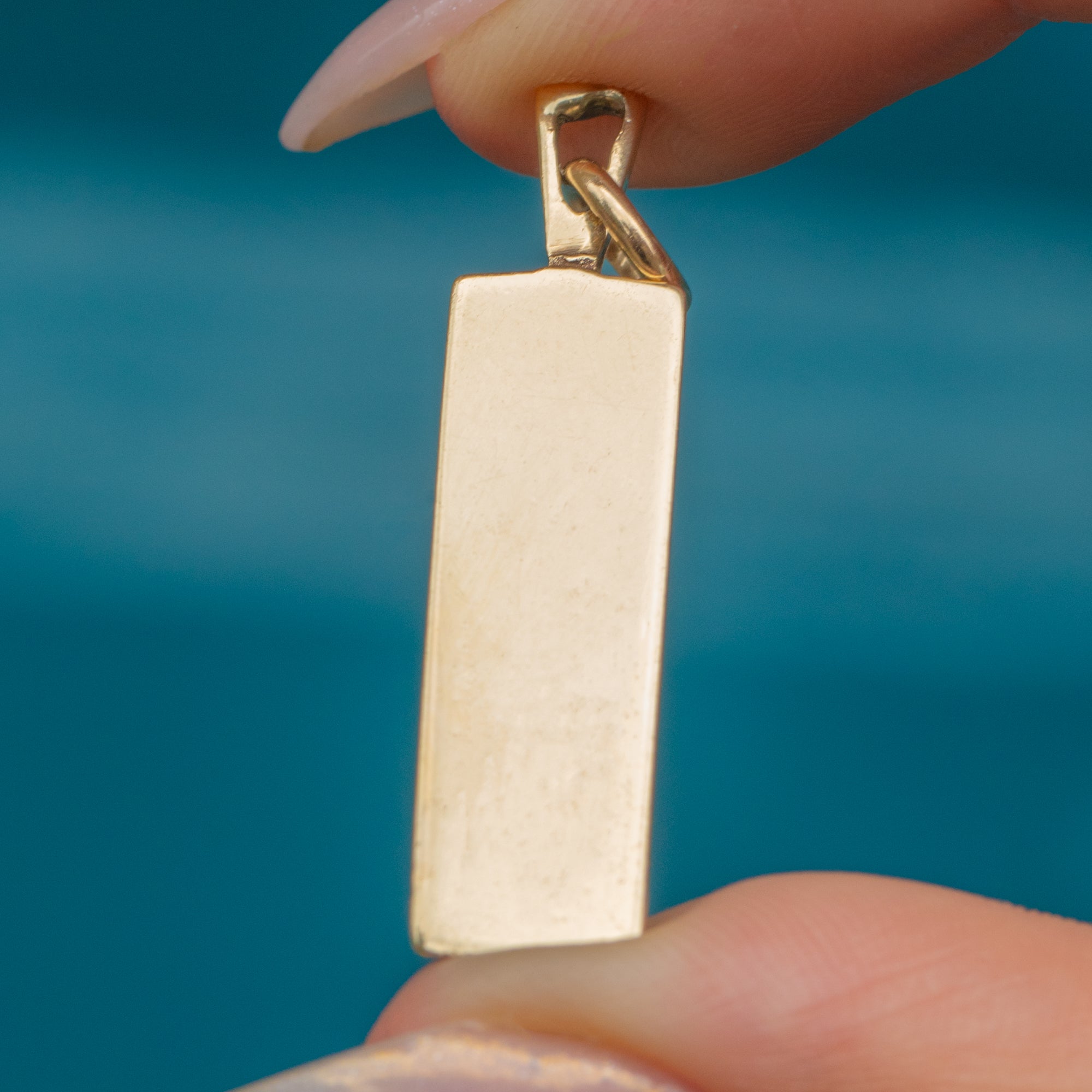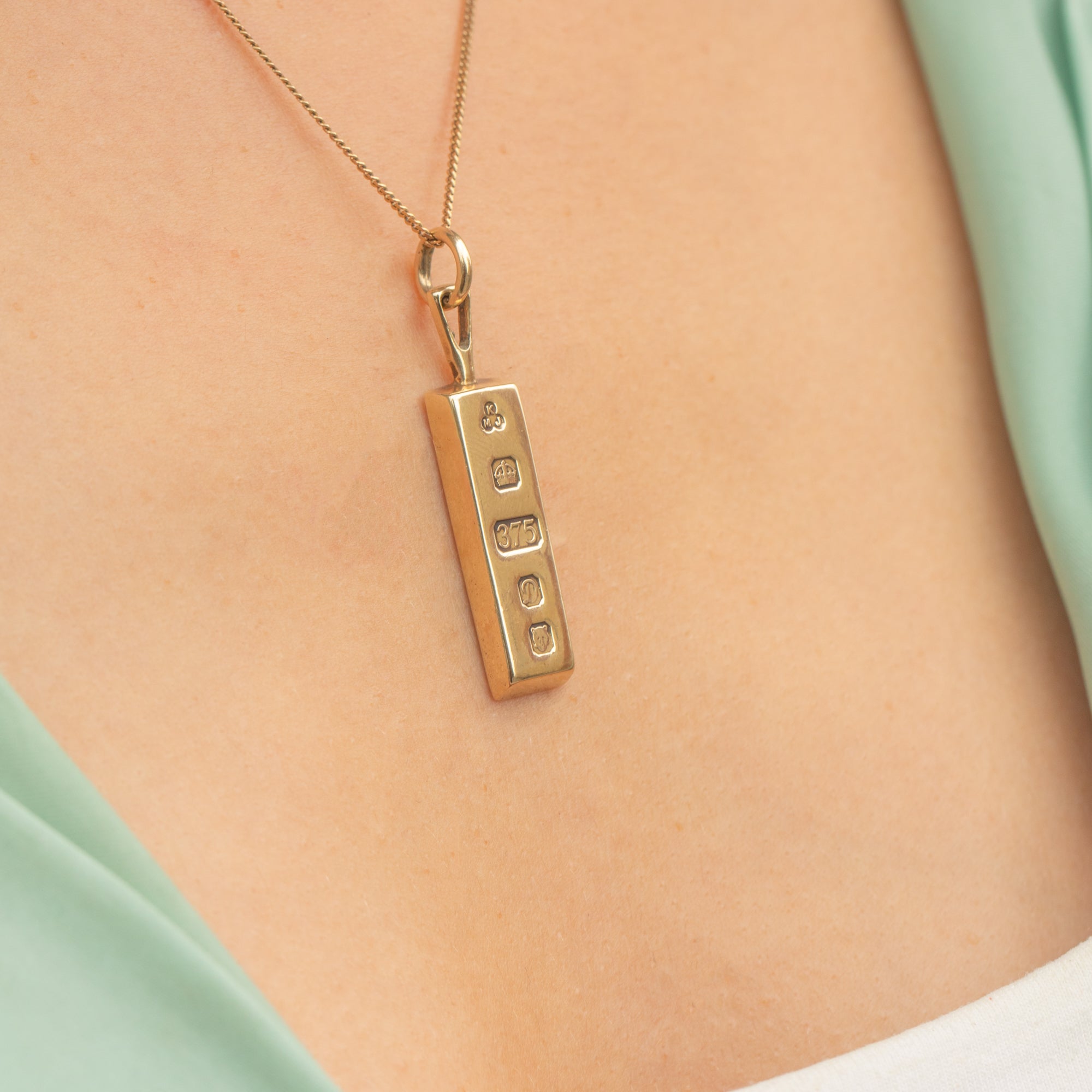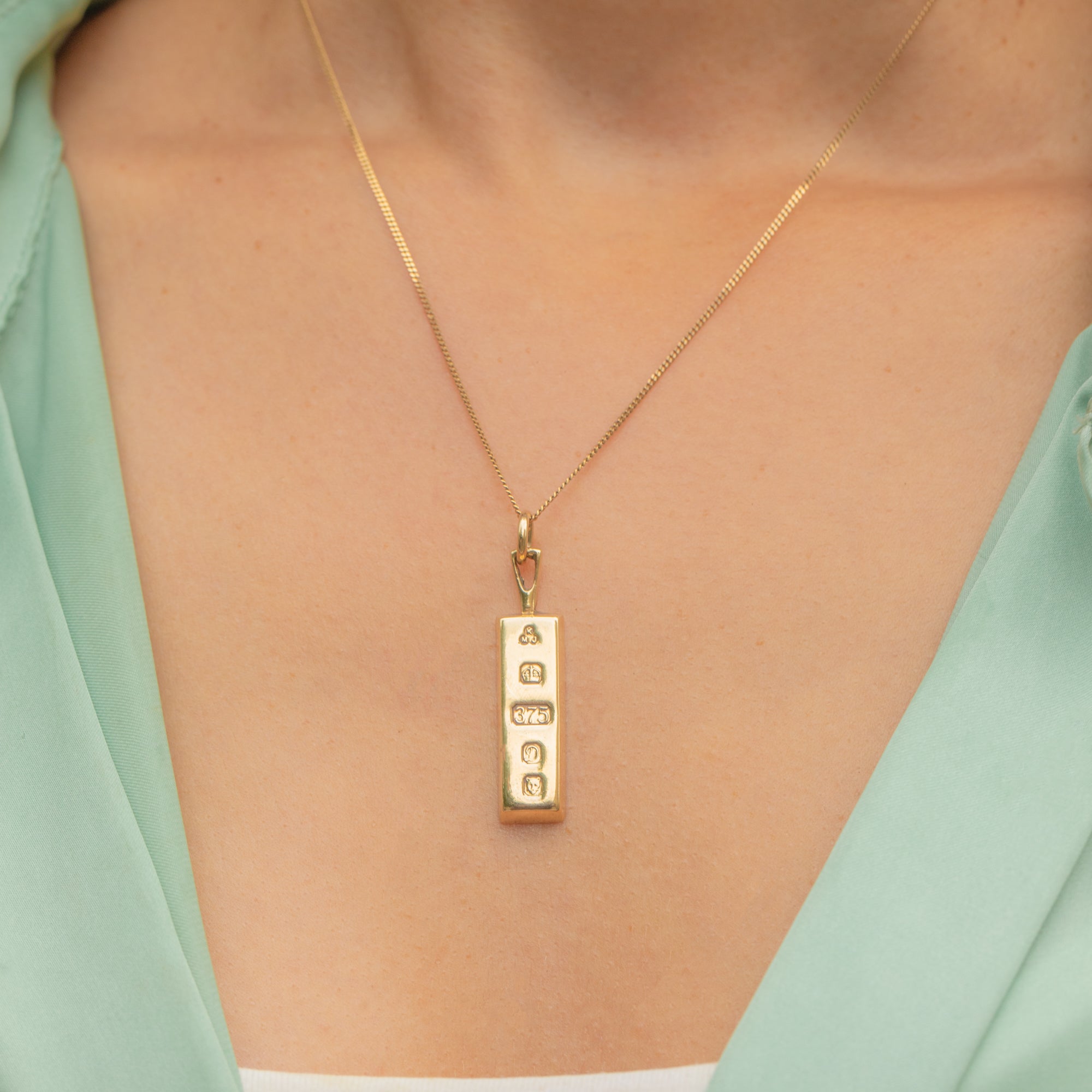 This Vintage 9ct Gold ingot pendant from 1978 is a sleek and timeless piece, perfect for layering or wearing alone.