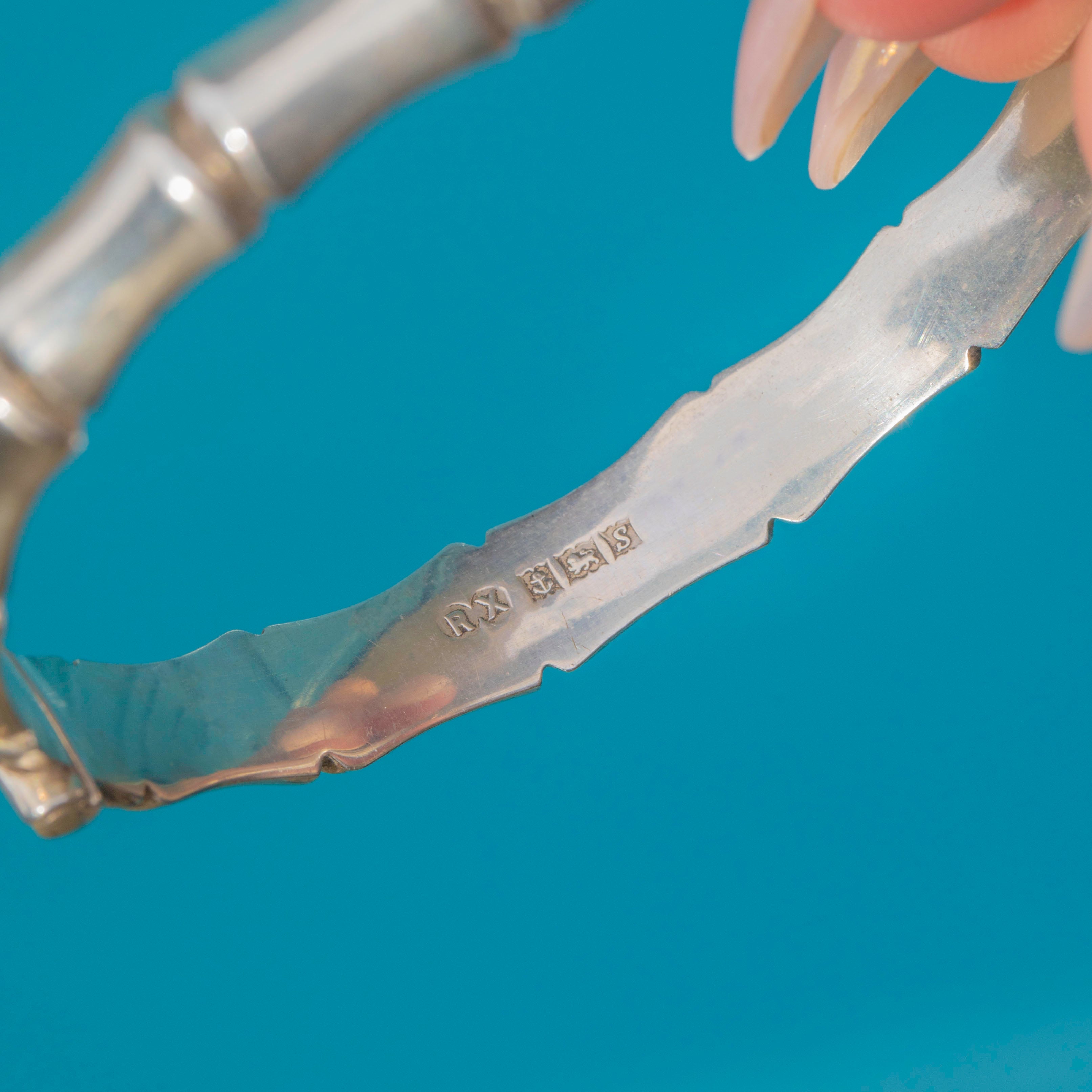 This fabulous Vintage Sterling Silver bangle captures the spirit of the 1960s with its bold bamboo design. Beautifully sculpted to mimic the natural nodes of bamboo, it has a stylish, organic feel that is as chic today as it was when first crafted.