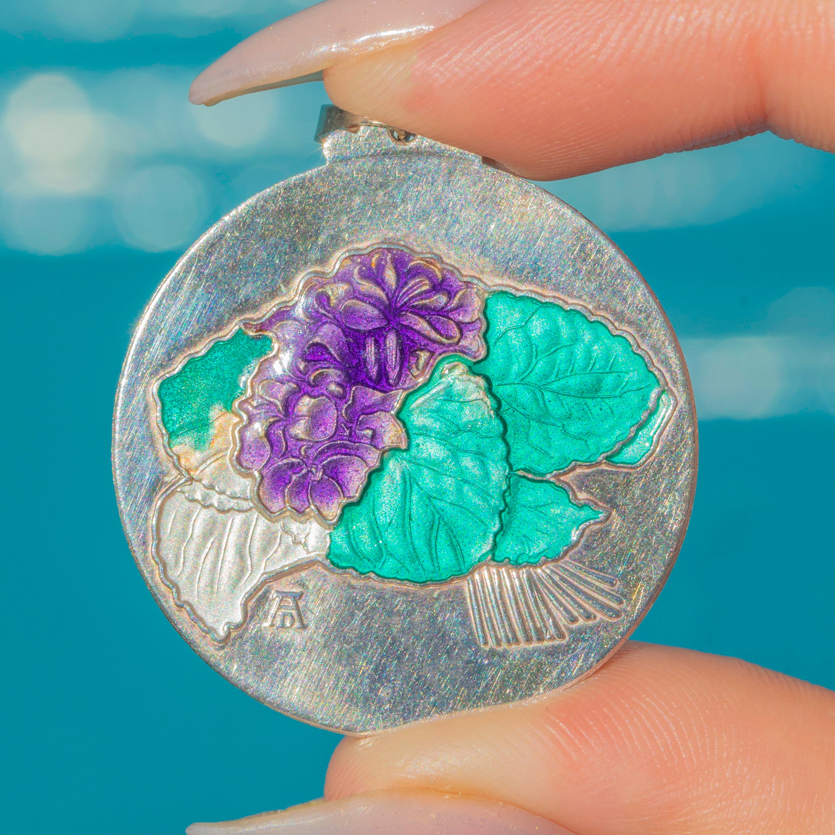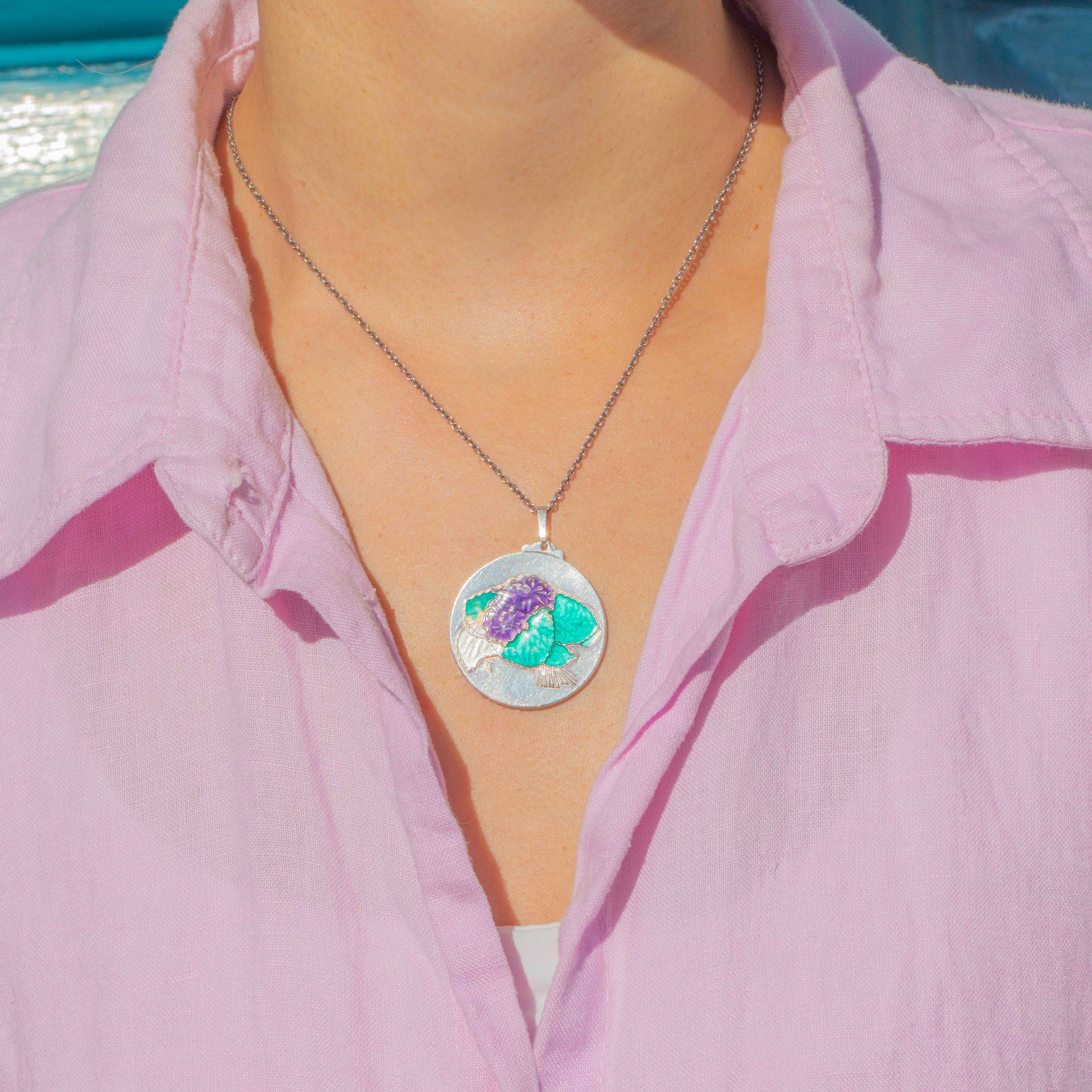 "Zum Muttertag" Albrecht Durer Silver Enamel Violet Flower Pendant